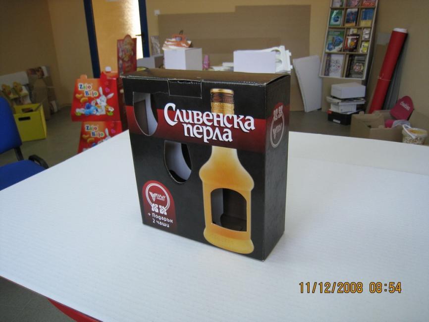 On line masked packaging laminated double-layer, micro, three and five layered cardboard with various full-color images of cardboard from 80 to 500g / m2 serving as advertising displays, stoppers, flyers, luxury boxes, posters, gift boxes, gift packaging, packaging wine and others. with exclusive design. Since 2012 the company has implemented a stacking machine with high-speed operation and the largest in the region size of 1400 x 2100 mm. This enables the production of large masked packaging, advertising racks, displays and other one part without assembly. This only leads to posebe their more robust construction of the devices on the one part.